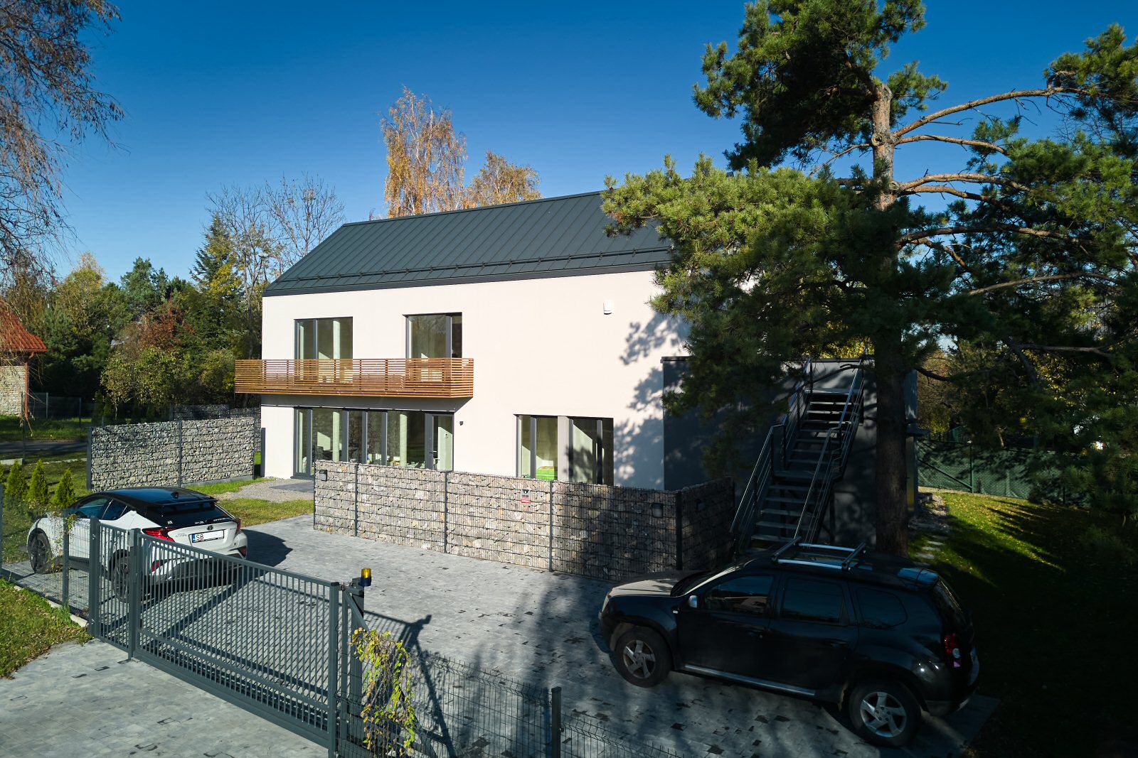 W pierwszym kwartale 2025r. ukończyliśmy realizację autorskiego projektu dupleksu z dwoma niezależnymi apartamentami w Bielsku-Białej przy ul. Kupieckiej 43. Projekt stanowi efektywne połączenie estetyki, architektury i jej funkcjonalności z ekonomiką, nowoczesnością i wykorzystaniem walorów otaczającej zieleni. Obiekt został zrealizowany ze szczególną starannością z wysokiej jakości materiałów przez naszego architekta – projektanta, a zarazem kierownika budowy.